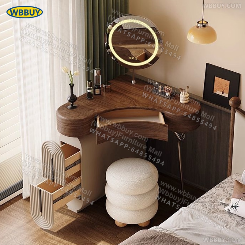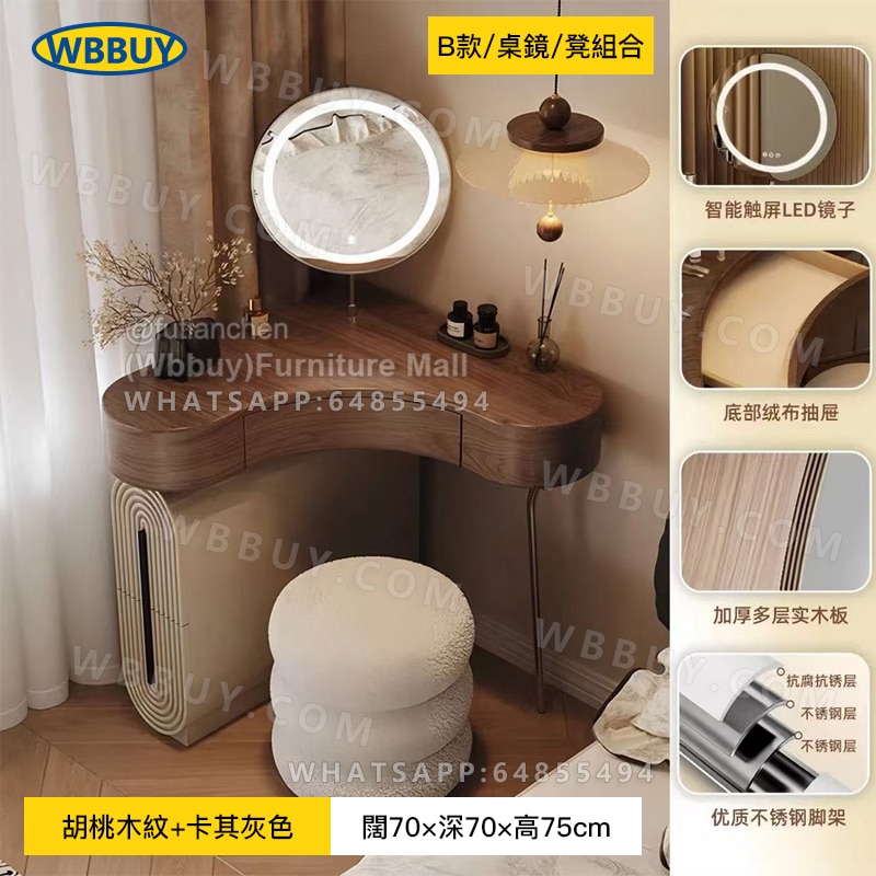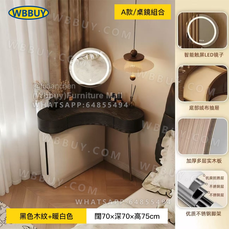 (Wbbuy)中古風化妝桌 電腦桌 書桌 拐角梳妝桌 化妝臺 梳妝枱 化妝櫃 轉角工作桌 電腦檯 化妝鏡 化妝凳 飄窗桌 包送貨