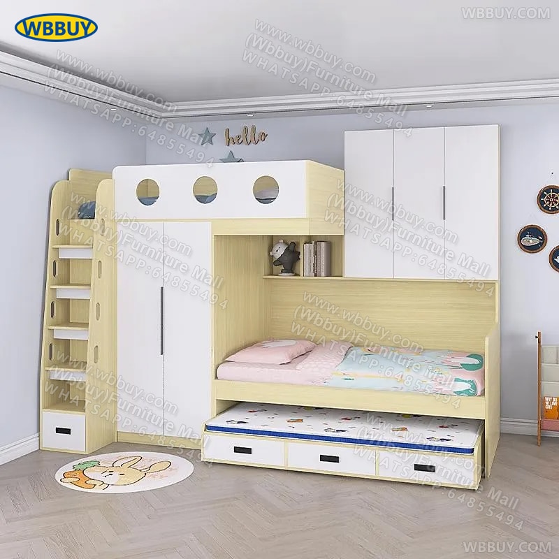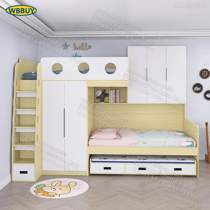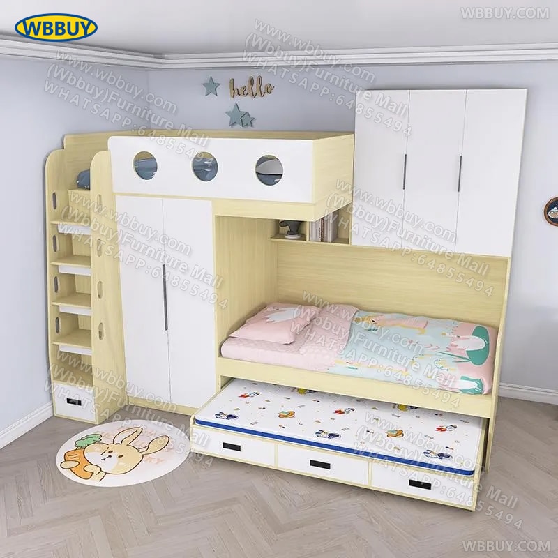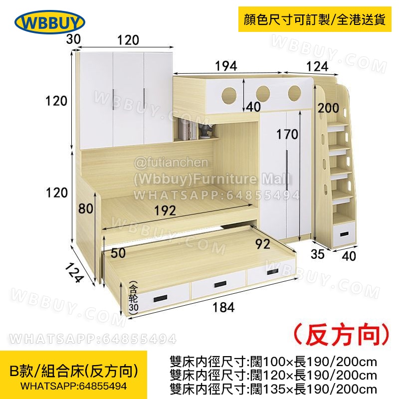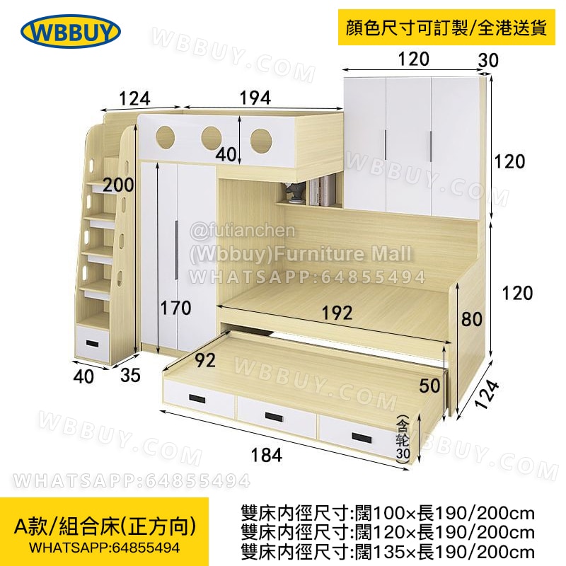(Wbbuy)交錯式上下床 小戶型高低錯位床 帶拖床 衣櫃一體儲物床 可訂製床 雙人床 子母床 小戶型床 包送貨
