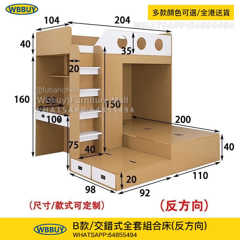 B款/交錯床全套組合(反方向):HK$7980