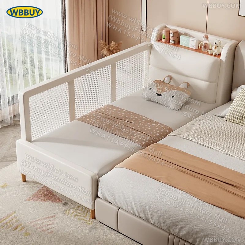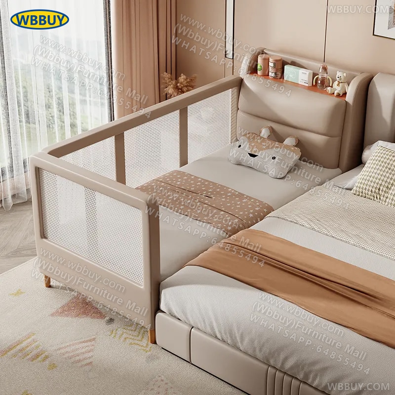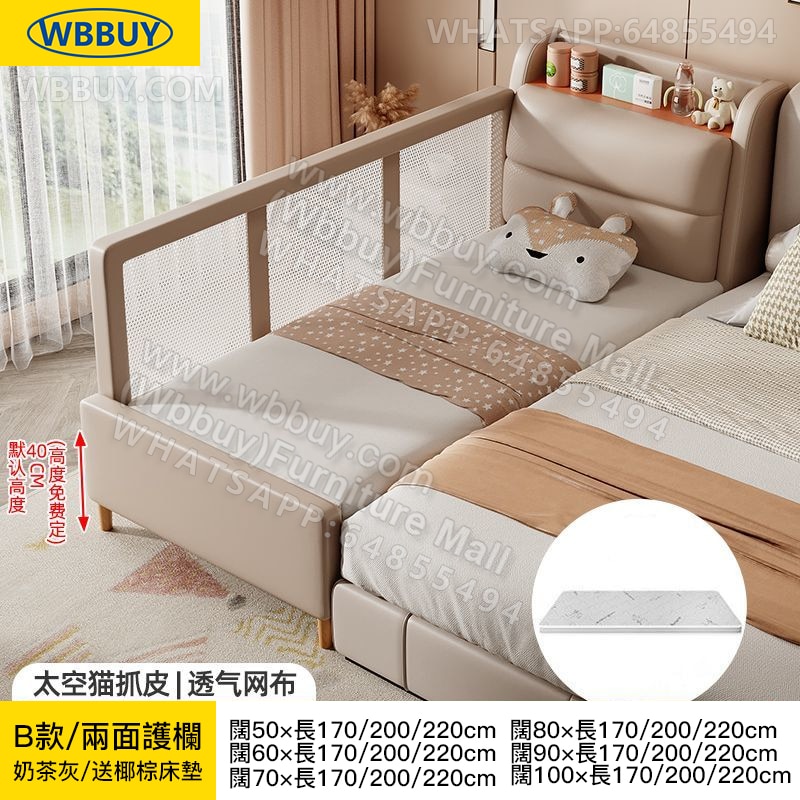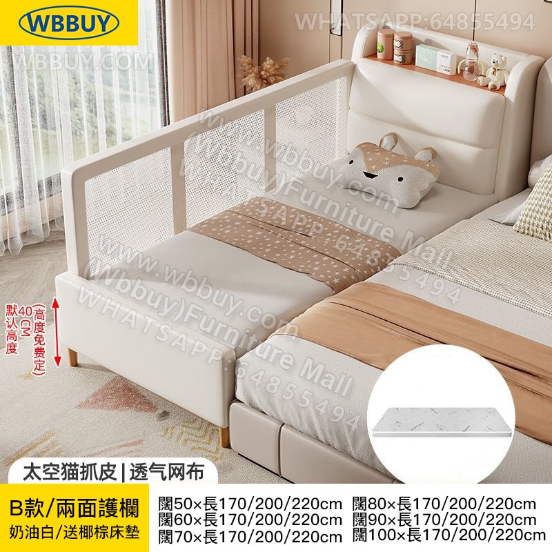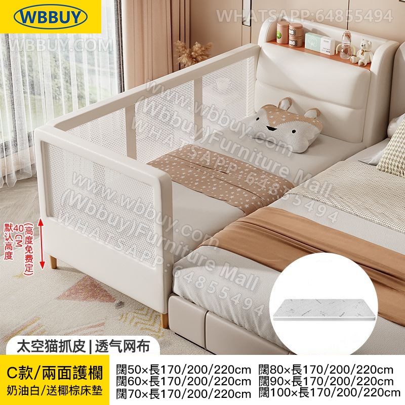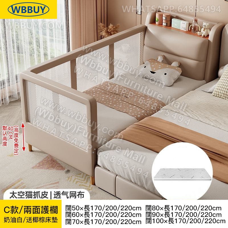 (Wbbuy)兒童床 床邊桌 實木拼床 女孩寶寶訂製床 拼接床 嬰兒床 小床 大床 小童床 帶護欄床架 軟靠兒童床 包送貨