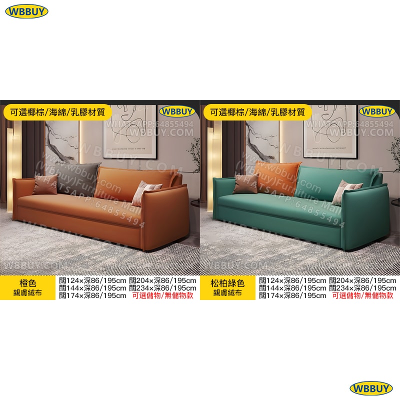 闊234×深86/195cm:海綿款$3180 乳膠款$3380 椰棕款$3380