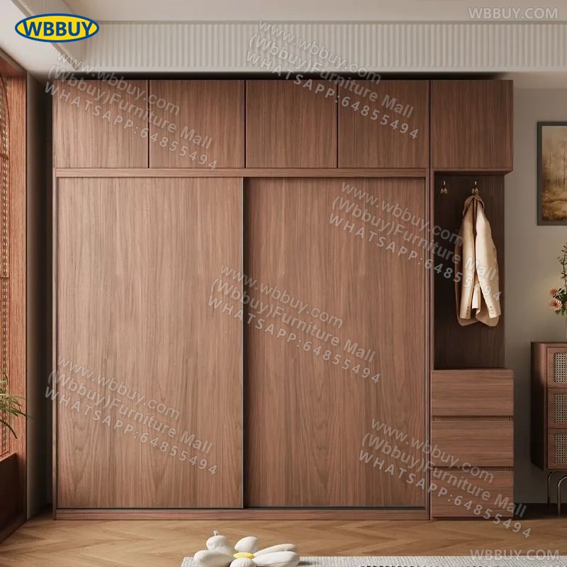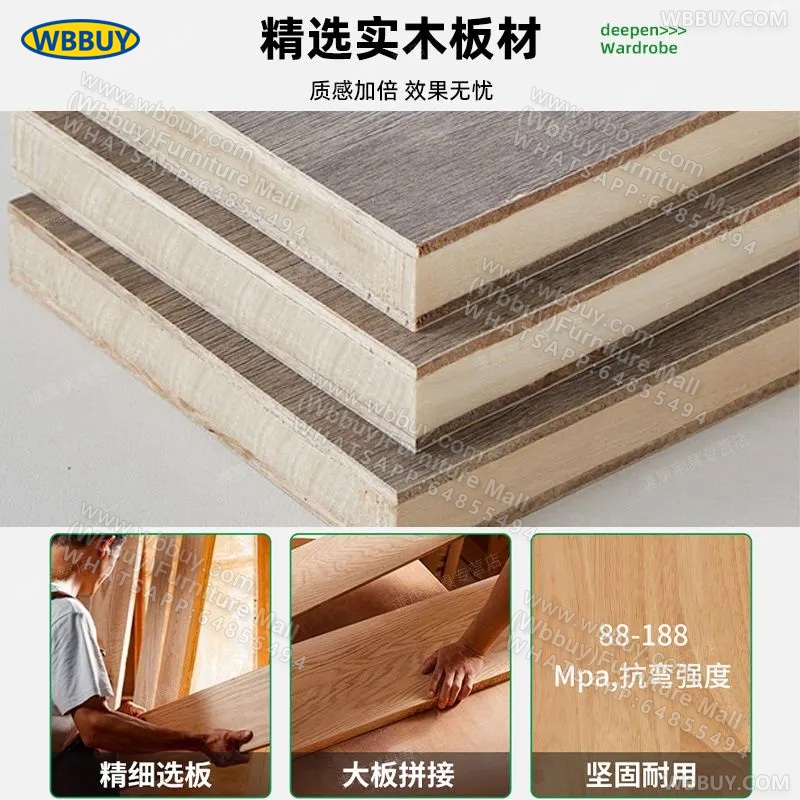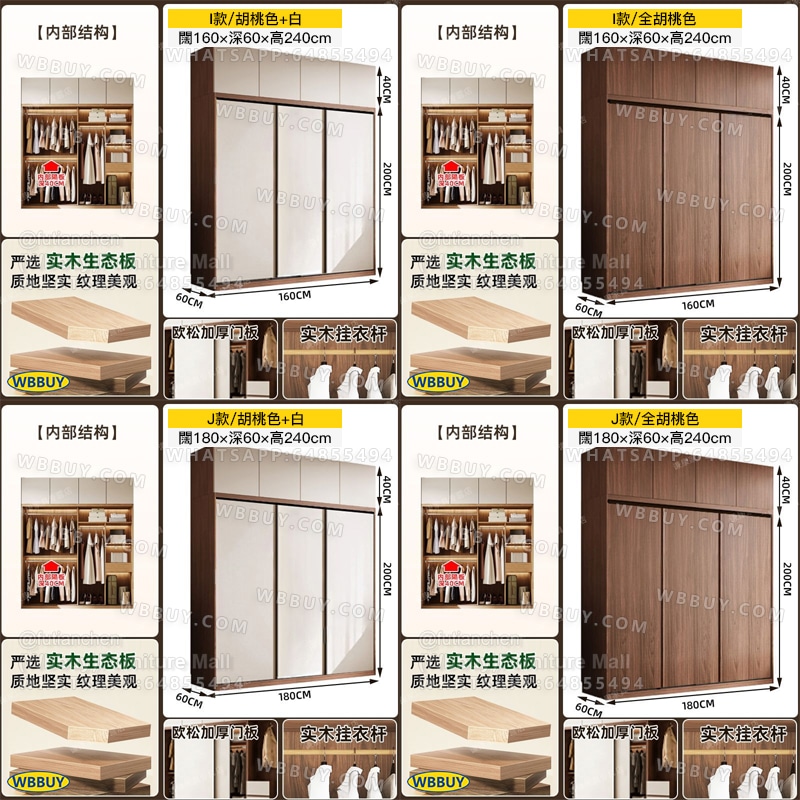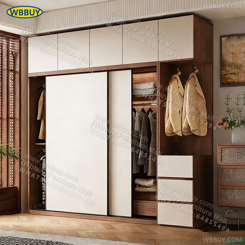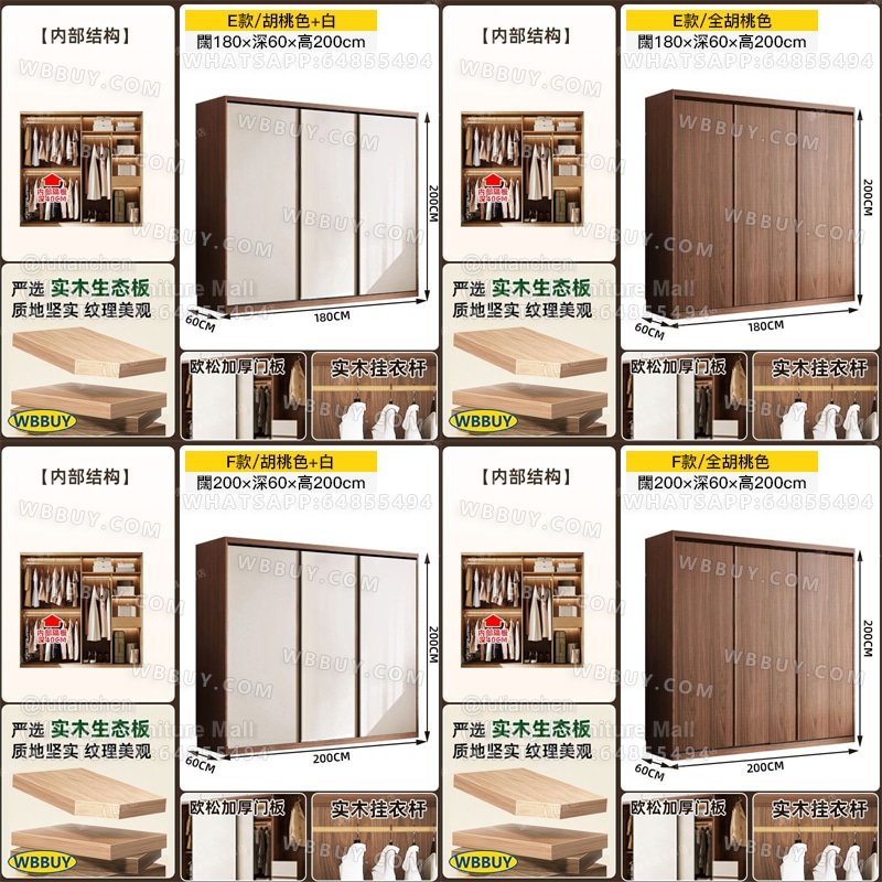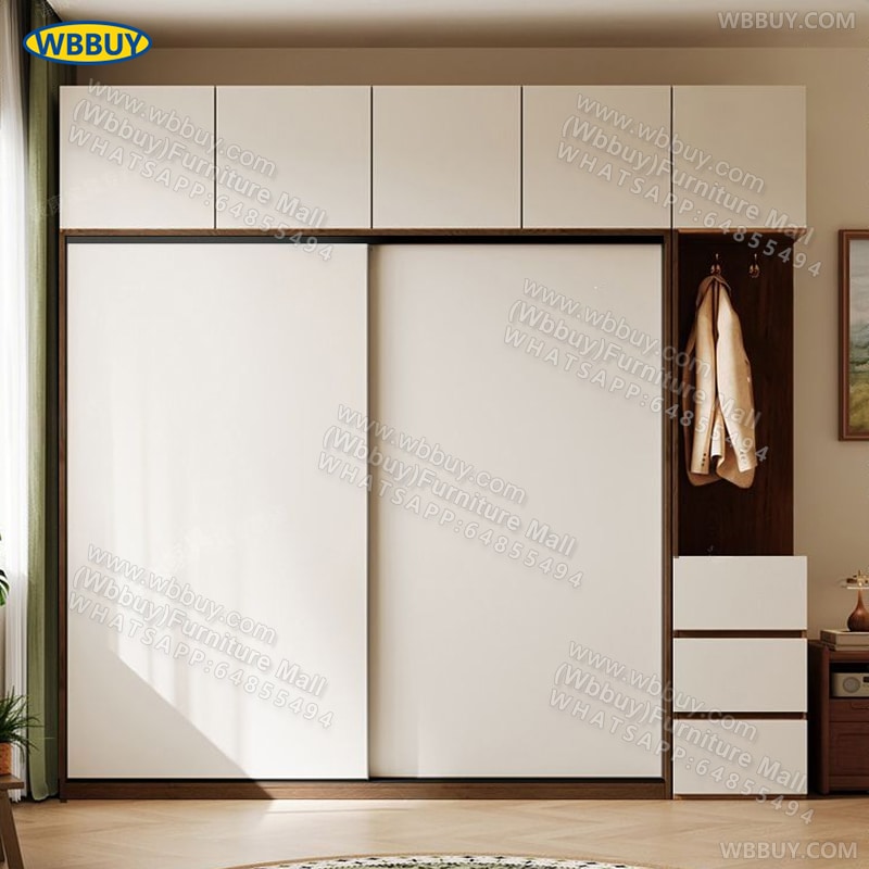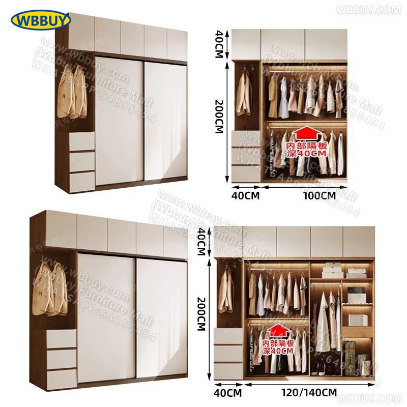 (Wbbuy)加厚實木衣櫃 趟門衣櫃 挂衣服櫃 衣架 衣櫥 推拉門衣櫃 大容量收納櫃 儲物櫃 房間衣櫃 帶頂櫃衣櫃 包送貨