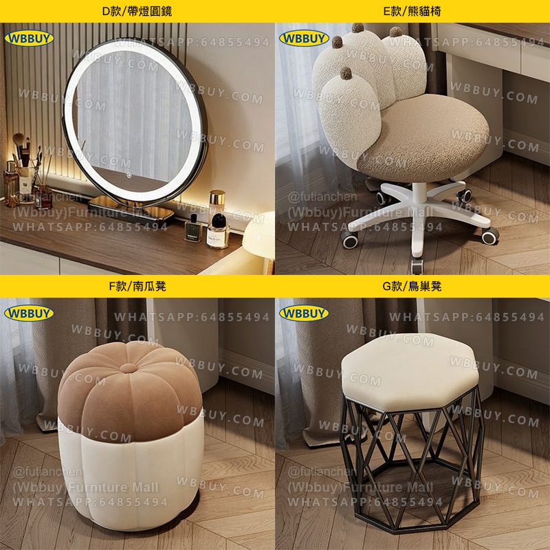 (Wbbuy)化妝桌 梳妝桌 化妝檯 梳妝枱 化妝凳 帶鏡化妝桌 書桌 辦公桌 電腦桌 工作桌 化妝櫃 儲物櫃 伸縮化妝桌 化妝凳 包送貨