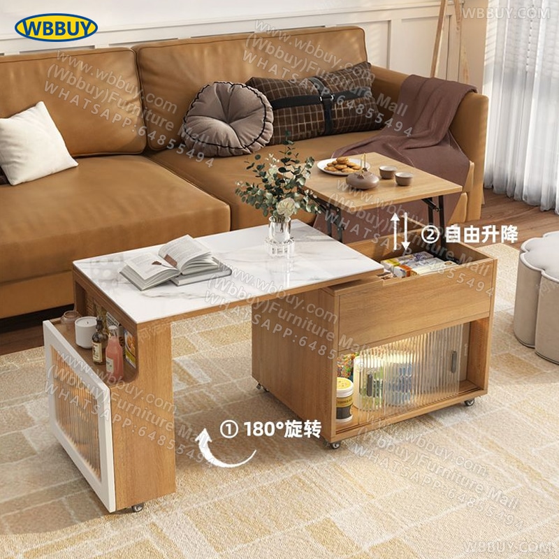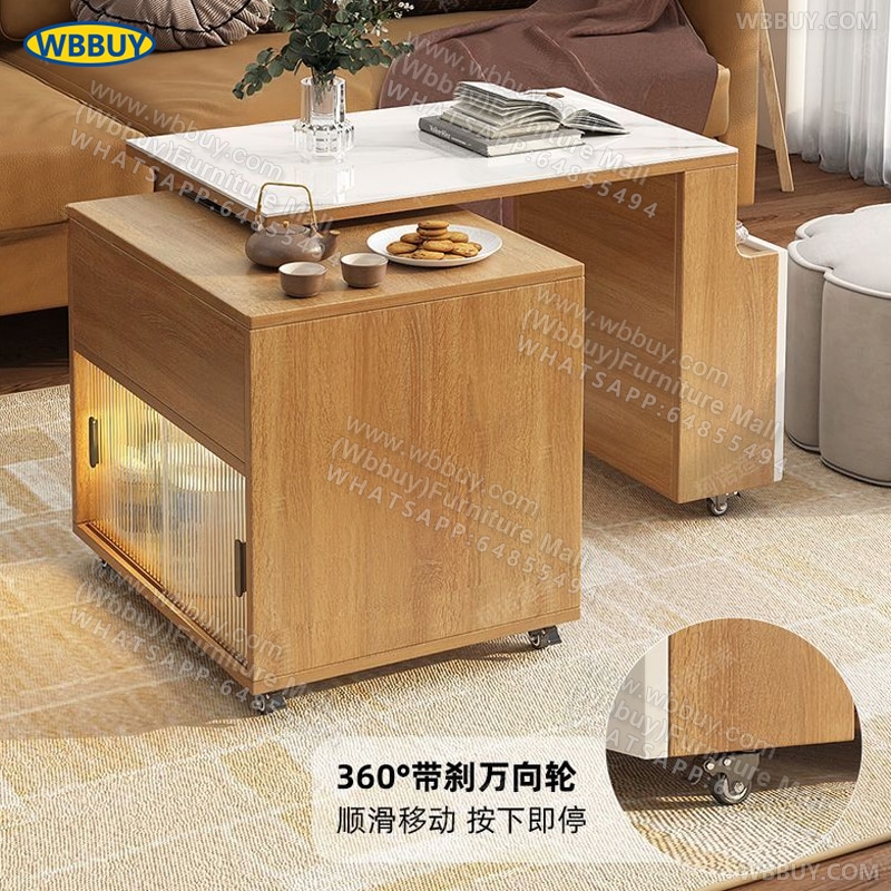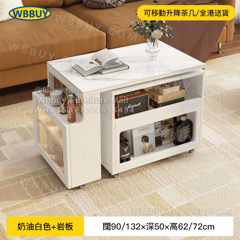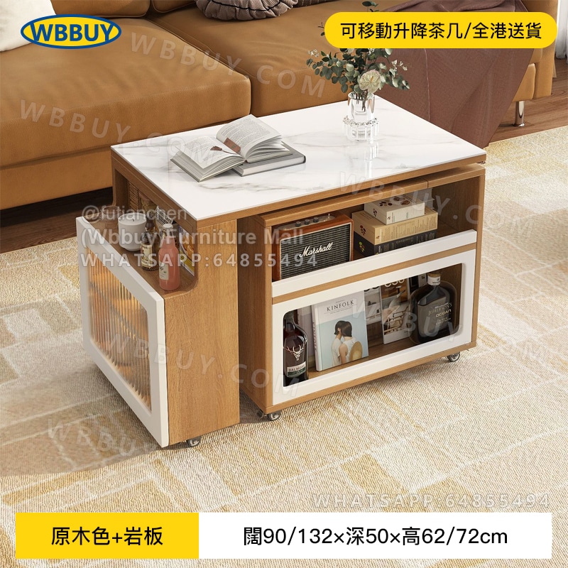 (Wbbuy)可移動摺叠茶几 茶桌 小桌子 茶枱 梳化邊櫃 升降茶几 可移動桌子 邊檯 梳化邊櫃 岩板茶几 包送貨
