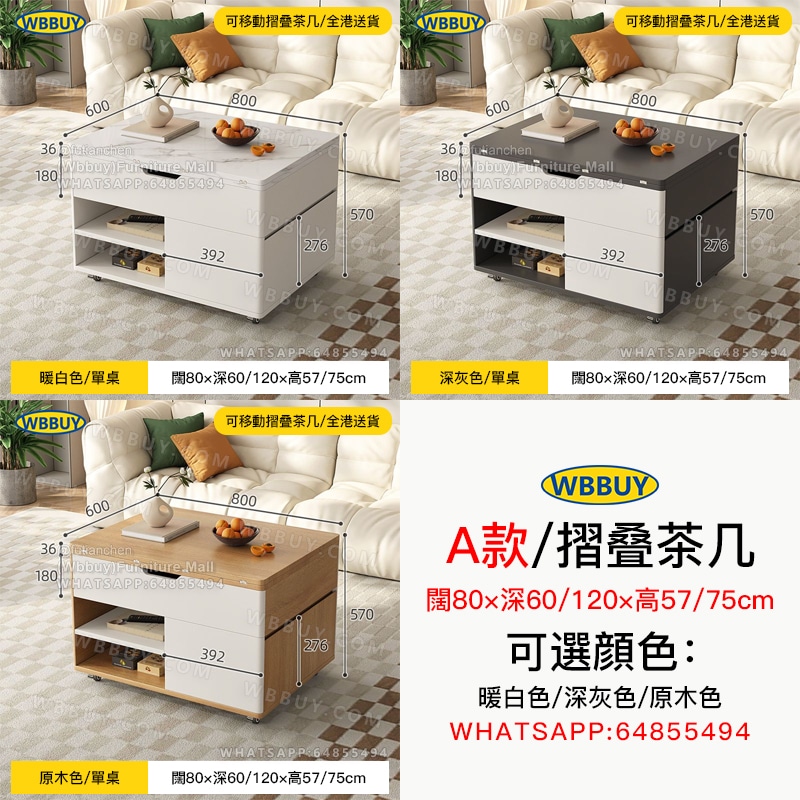 A款摺叠茶几:闊80×深60/120×高57/75cm:HK$1580