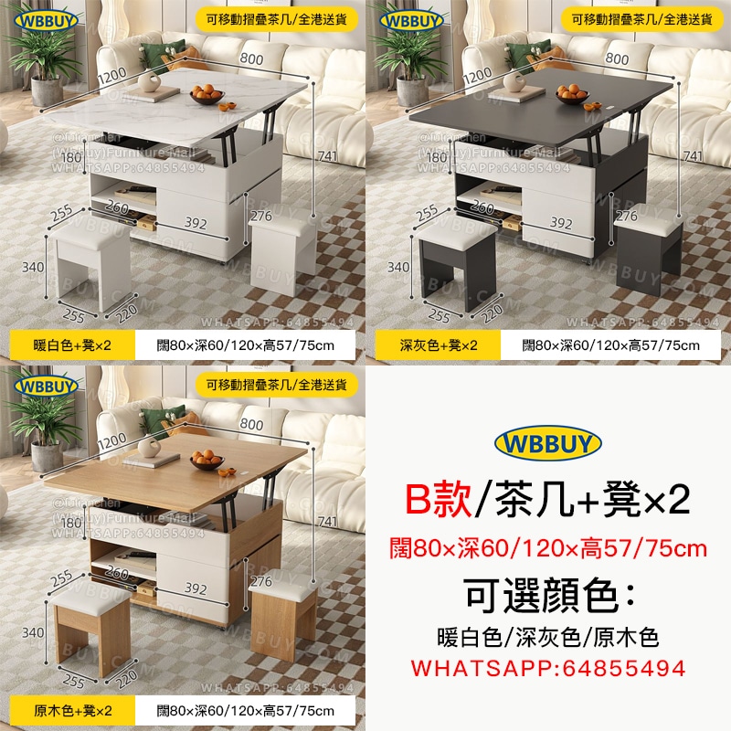 B款/茶几+凳×2:闊80×深60/120×高57/75cm:HK$1750