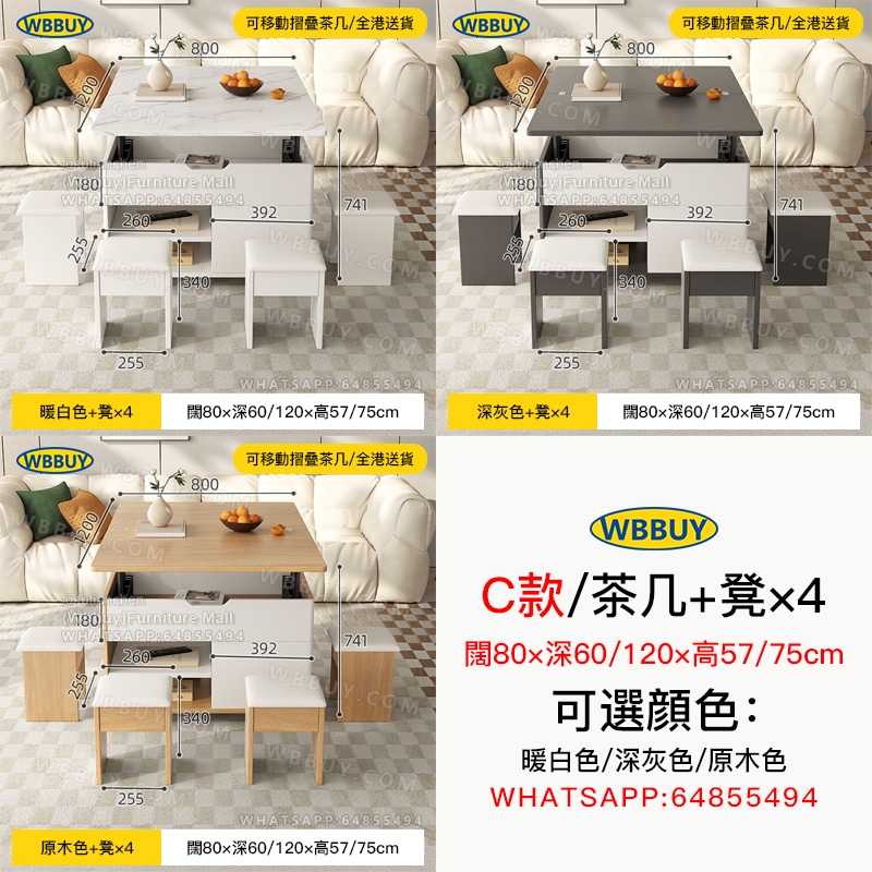 C款/茶几+凳×4:闊80×深60/120×高57/75cm:HK$1900
