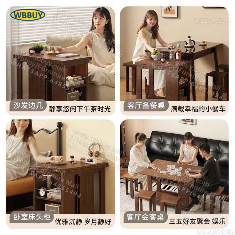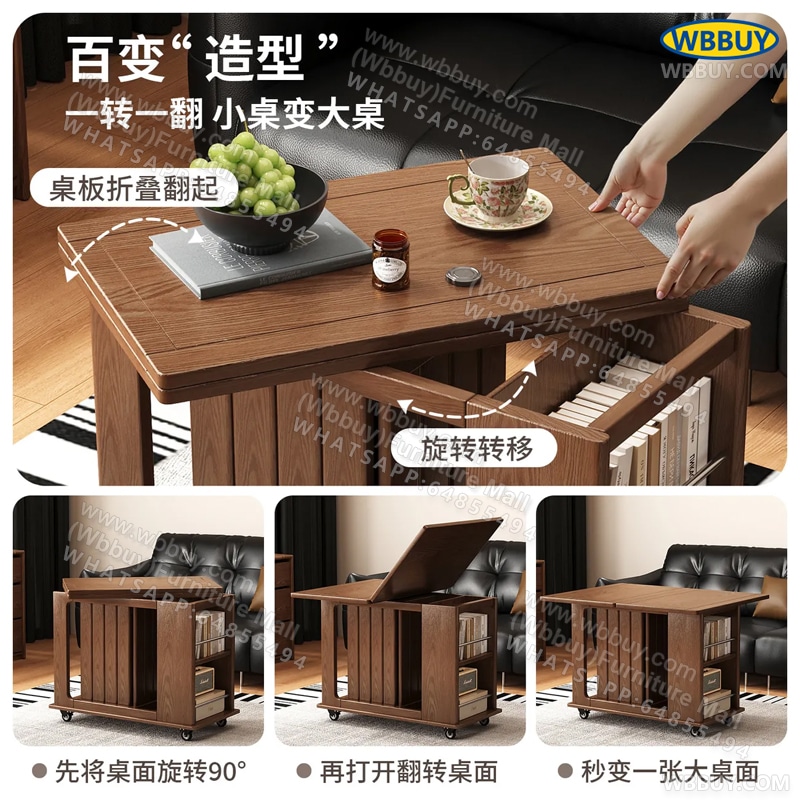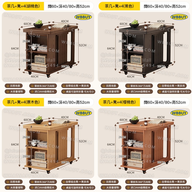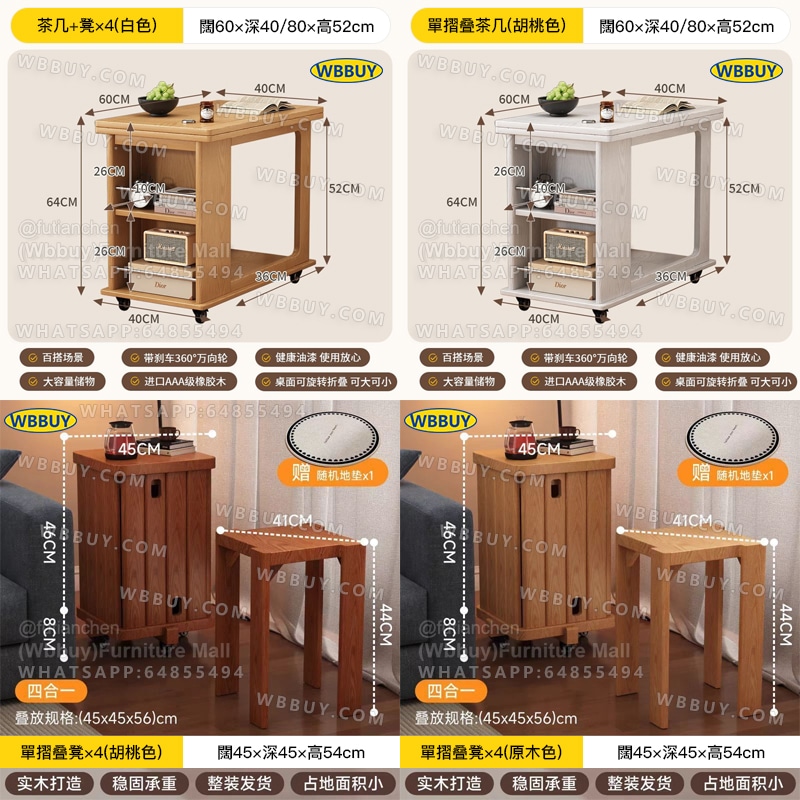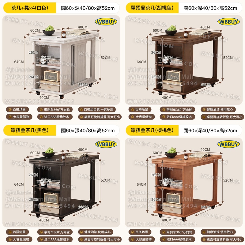 (Wbbuy)可移動茶几 摺叠茶几 實木茶几 邊桌 邊枱 茶桌 小推車邊几 梳化邊桌 可旋轉摺叠茶几 小桌子 娛樂桌 餐桌 包送貨