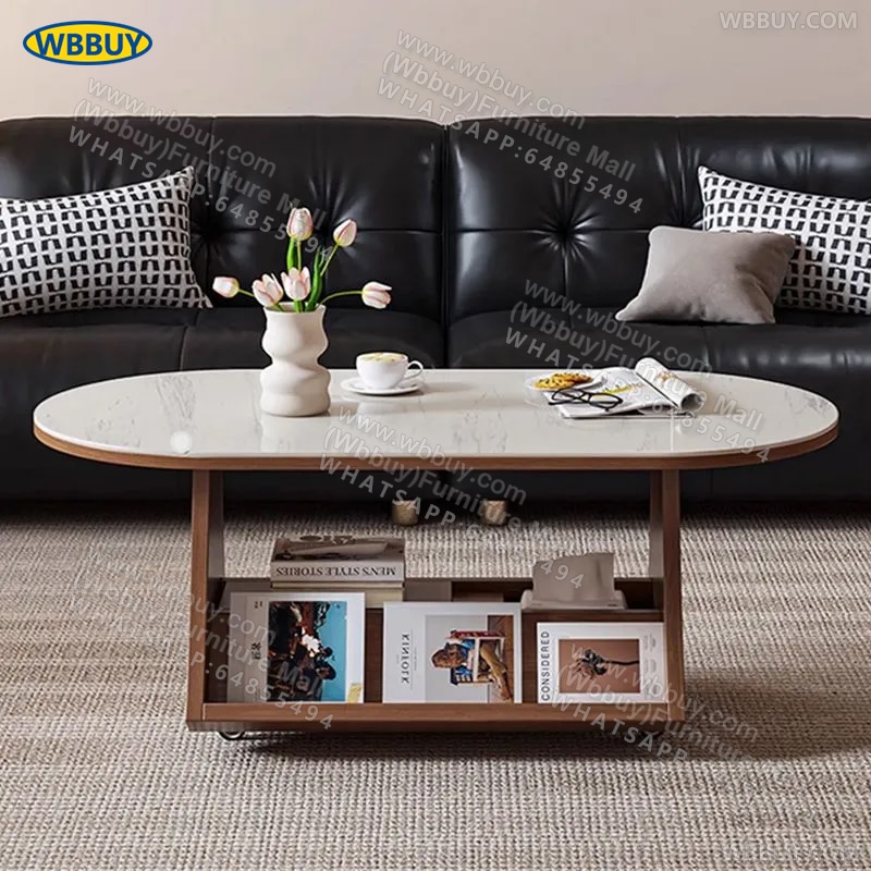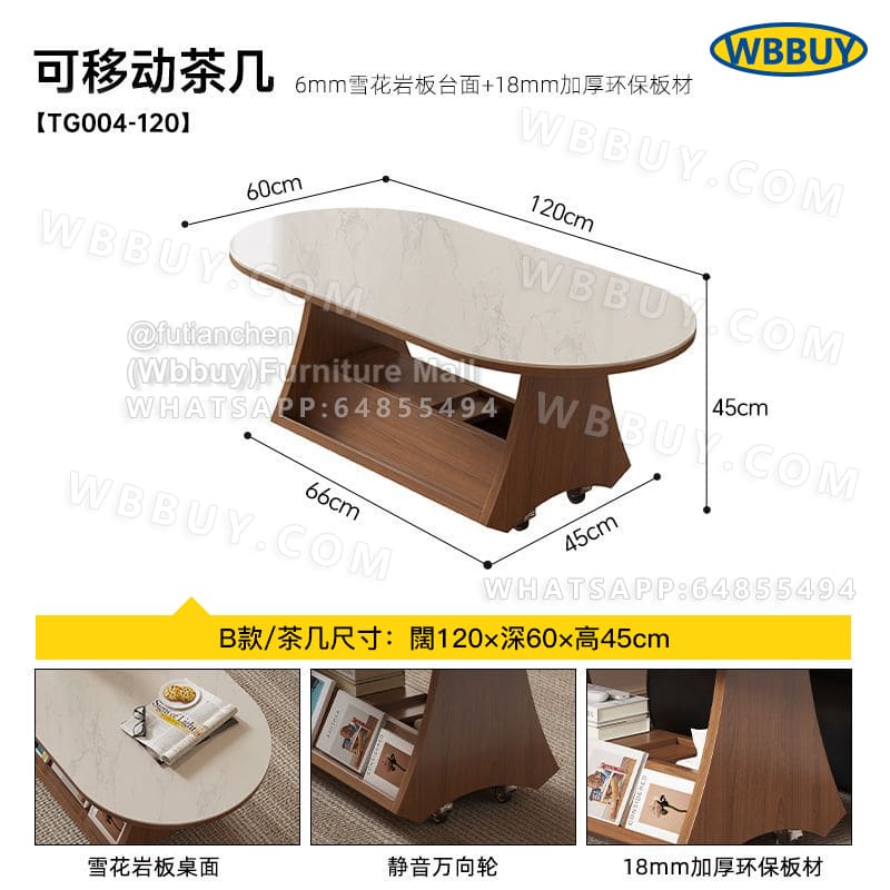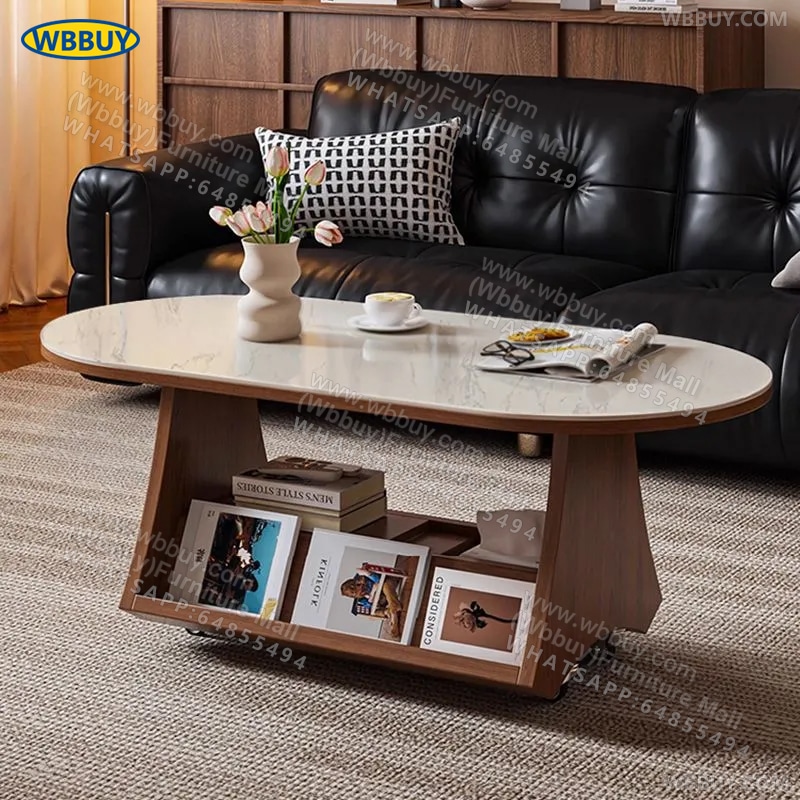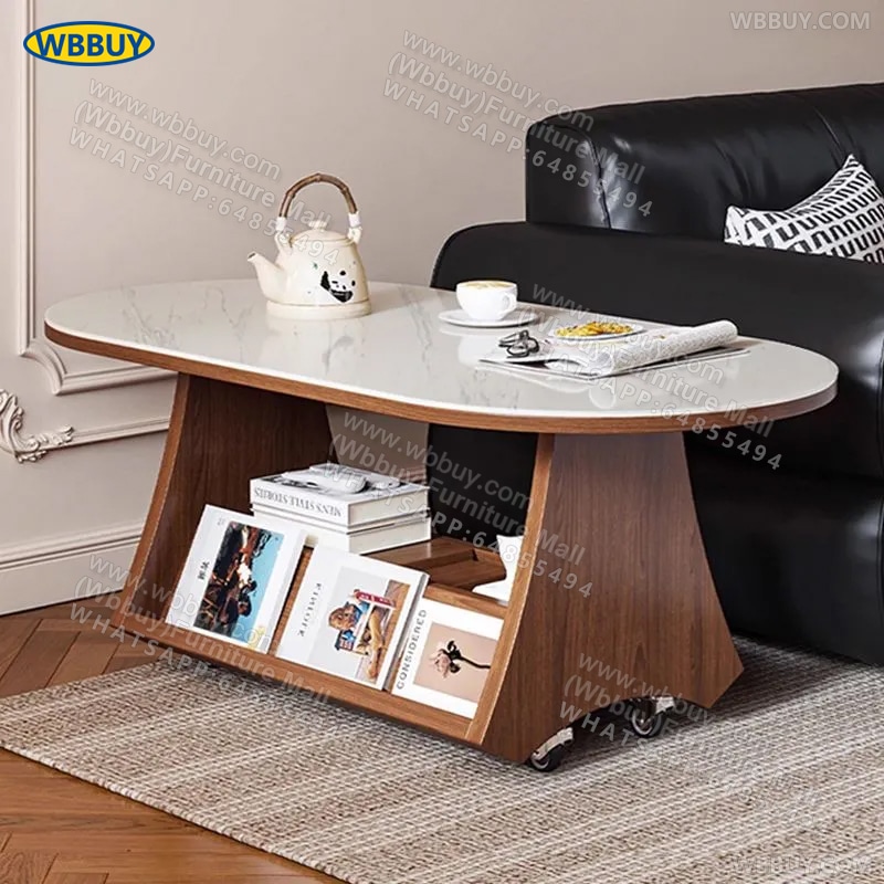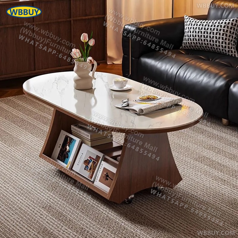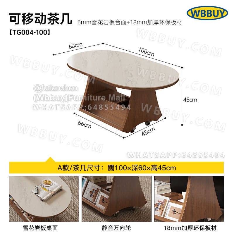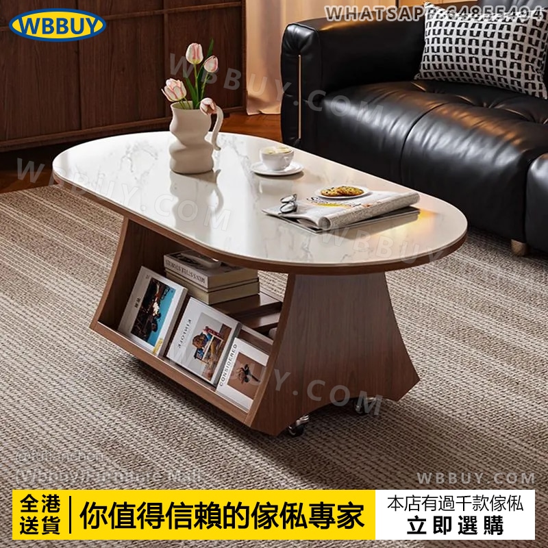 (Wbbuy)可移動茶几 橢圓形收納桌 岩板茶桌 梳化邊桌 咖啡桌 小桌子 小推車桌子 可移動茶檯 茶枱 包送貨