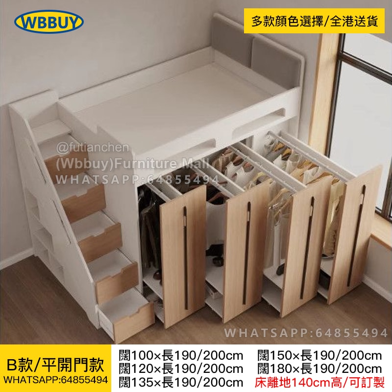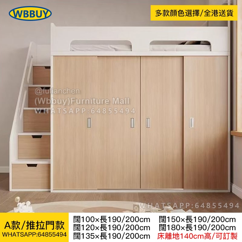 (Wbbuy)可訂製實木床 上床下櫃 帶衣櫃床 衣帽間床組合 半高床 全套衣櫃床 一體櫃床 多功能組合床 儲物床 置物床 兒童床 高箱床 包送貨