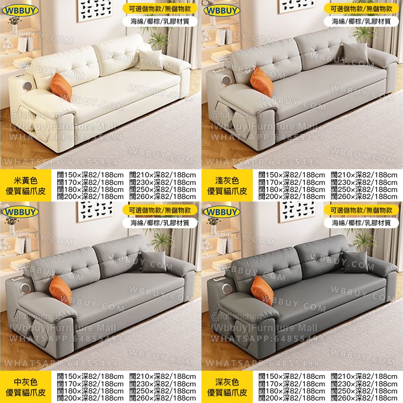 闊260×深82/188cm:海綿款$3150 乳膠款$3350 椰棕款$3350