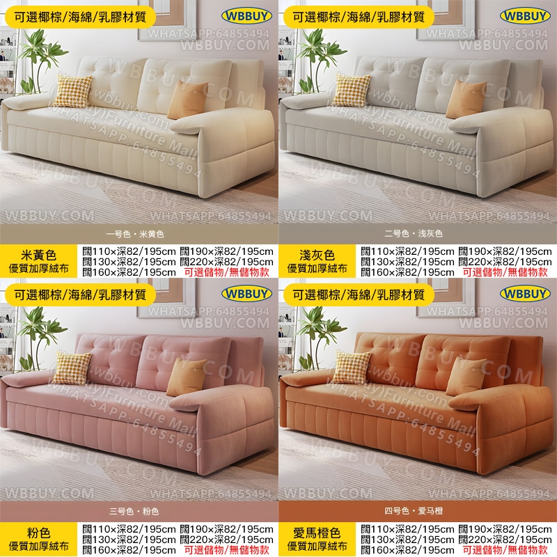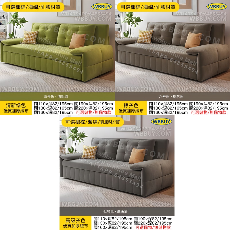 (Wbbuy)奶油風梳化 絨布梳化 雙人梳化 單人梳化 摺叠梳化床 伸縮梳化 儲物梳化 置物梳化 可收納梳化 三人梳化 可變床梳化 多功能梳化 sofa 沙發 梳發 包送貨