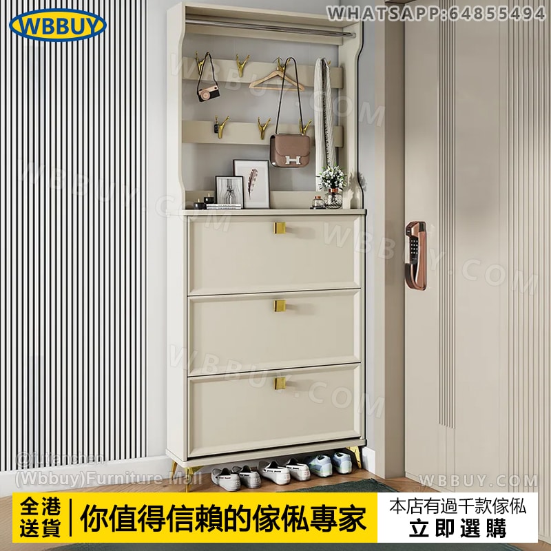 (Wbbuy)奶油風翻斗鞋櫃 超薄鞋櫃 窄身鞋櫃 鞋架 玄關櫃 儲物櫃 多層鞋櫃 大容量鞋架 門口鞋櫃 高身鞋櫃 衣帽櫃 挂衣服櫃 包送貨