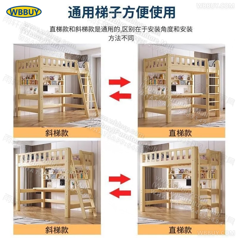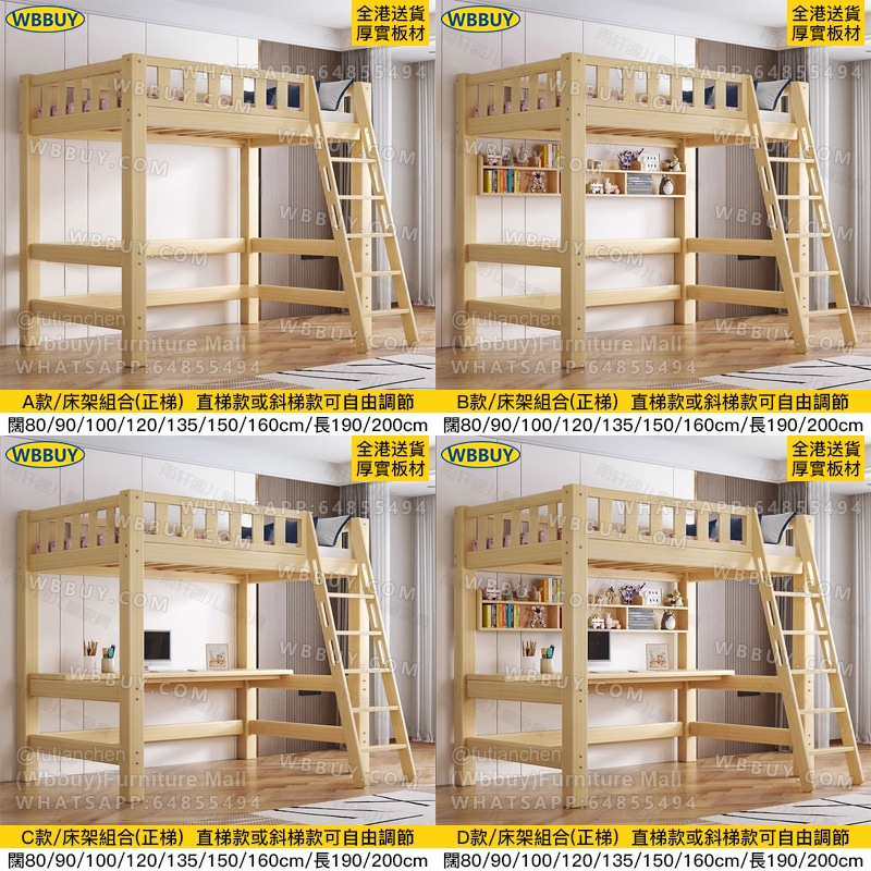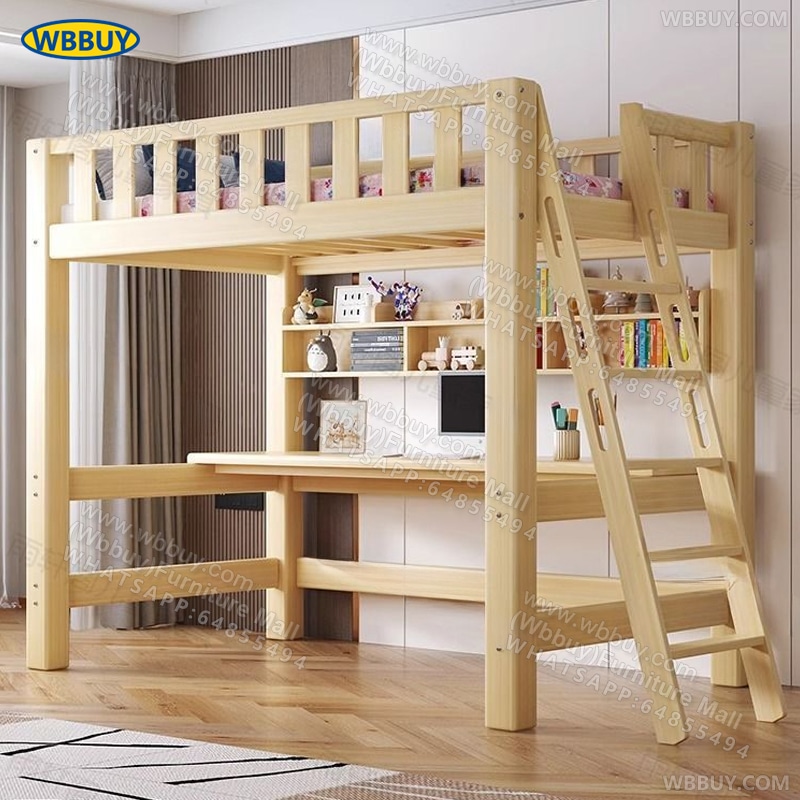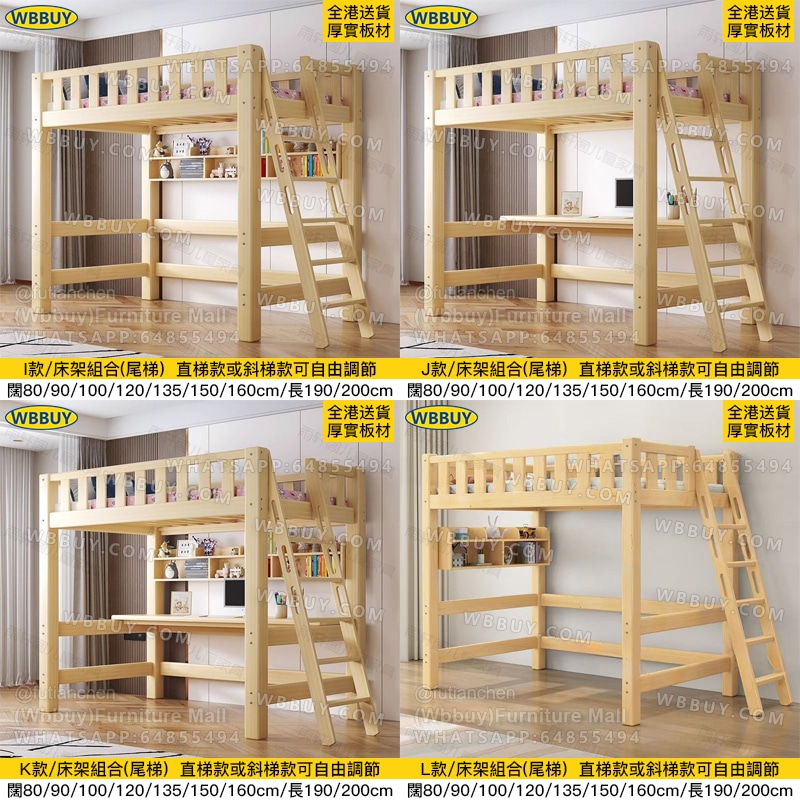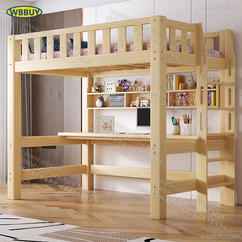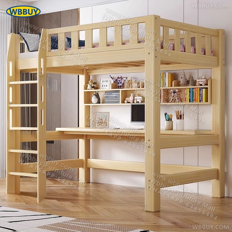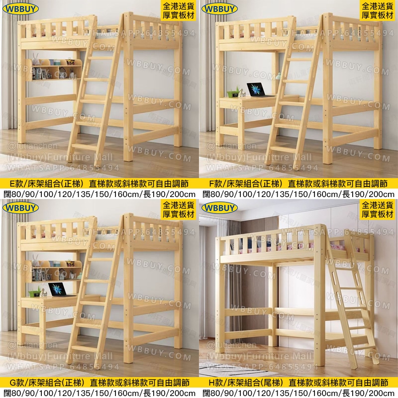 (Wbbuy)實木上床下桌 高架床 碌架床 組合床 兒童床 帶書桌床 爬梯床 實木床架 雙層床 雙人床 單人床 一體床 床墊床褥 包送貨