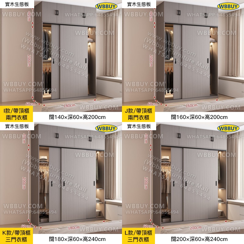 J款/衣櫃+頂櫃:闊140×深60×高240cm:HK$1980