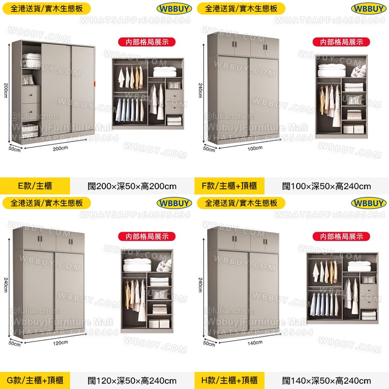 F款/衣櫃+頂櫃:闊100×深50×高240cm:HK$1680