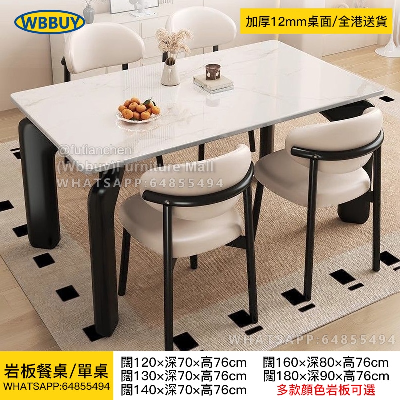 (Wbbuy)岩板餐桌 長方形桌子 飯桌 餐枱 餐桌椅 飯檯 岩板飯桌 餐椅 碳鋼桌腳餐桌 食飯枱 包送貨