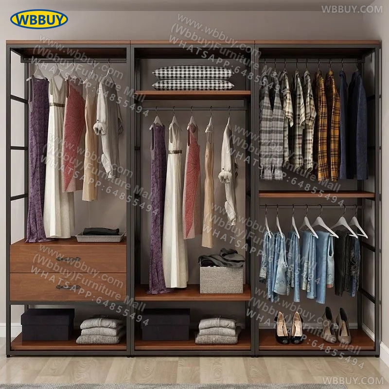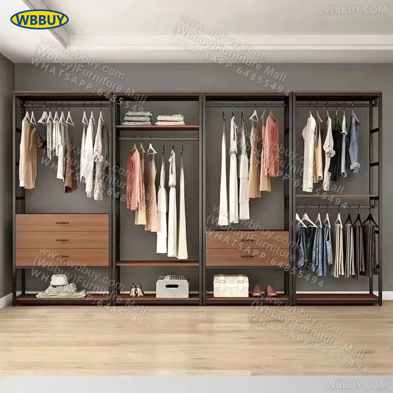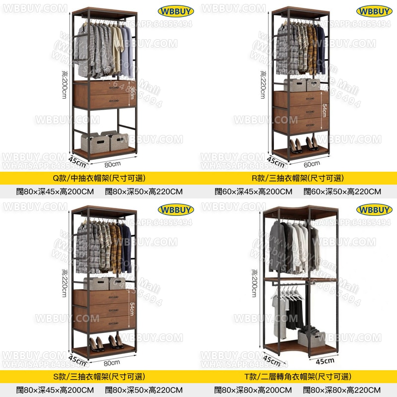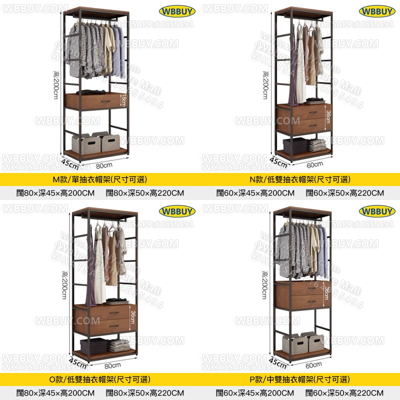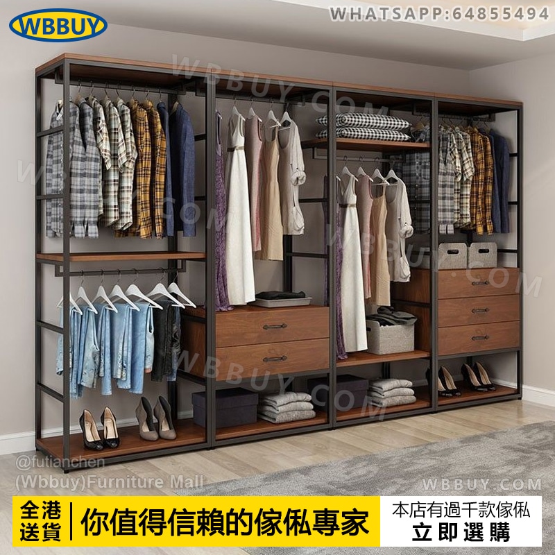 (Wbbuy)步入式衣帽架 帶抽屜落地衣架 展示架 衣帽櫃 挂衣服架 開放式衣櫃 衣架 收納衣櫃 儲物櫃 包送貨