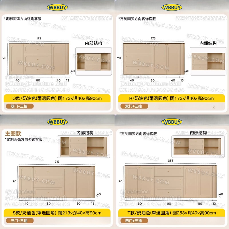 (Wbbuy)法式復古奶油風餐邊櫃 電視櫃 茶水櫃 置物櫃 收納櫃 組合櫃 客廳櫃 娛樂櫃 圓弧收納櫃 抽屜櫃 包送貨