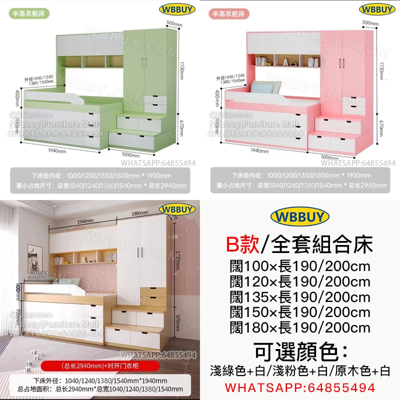 A款組合床$6380 B款組合床$6780 5cm椰棕床墊$588 10cm椰棕床墊$788