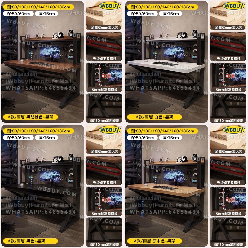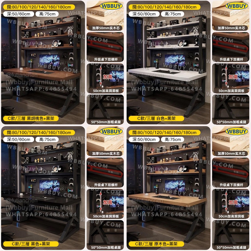 (Wbbuy)電腦桌 辦公桌 書桌 學習桌 工作桌 電競桌 帶書架桌子 辦公室桌 書枱 電腦檯 寫字桌 讀書桌 書檯 加厚電腦桌 包送貨