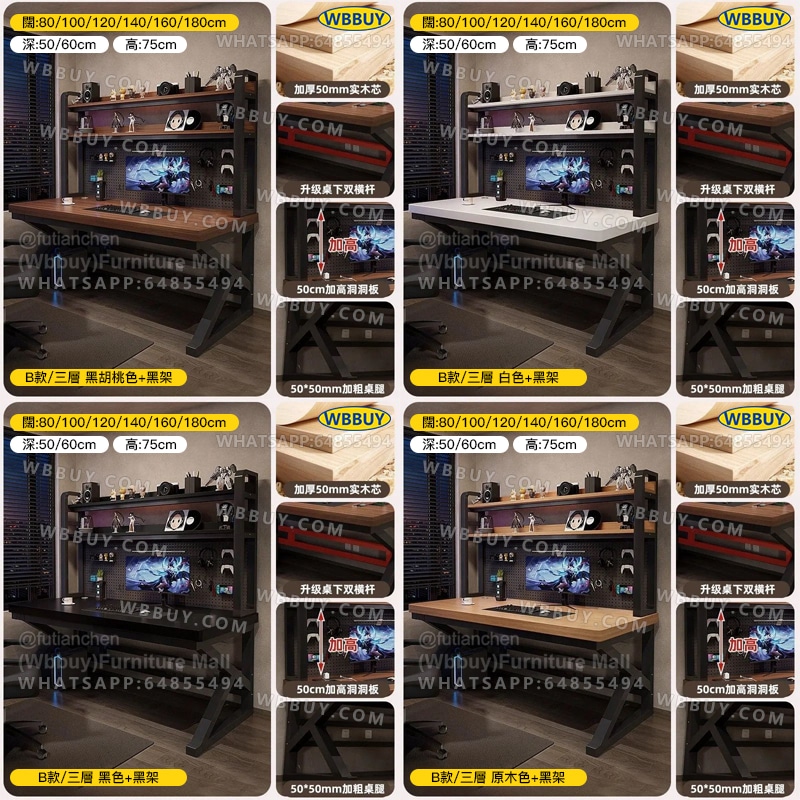 B款/三層書架電腦桌: